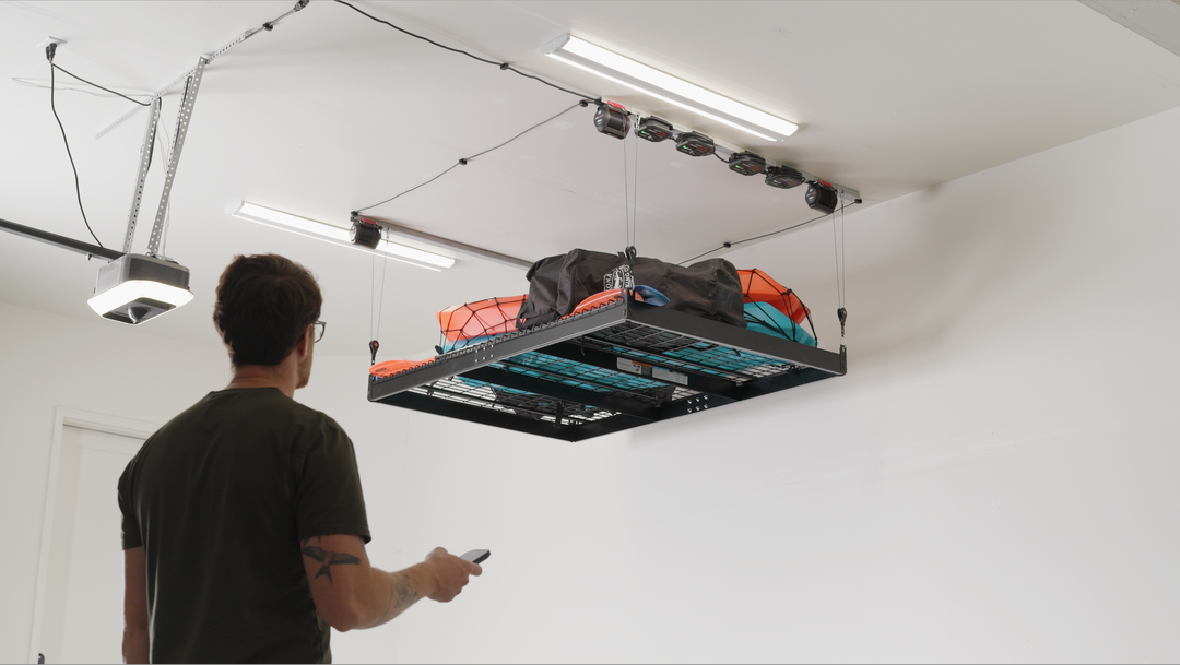 Raise and store your items overhead with the motorized Platform Storage Lifter.
