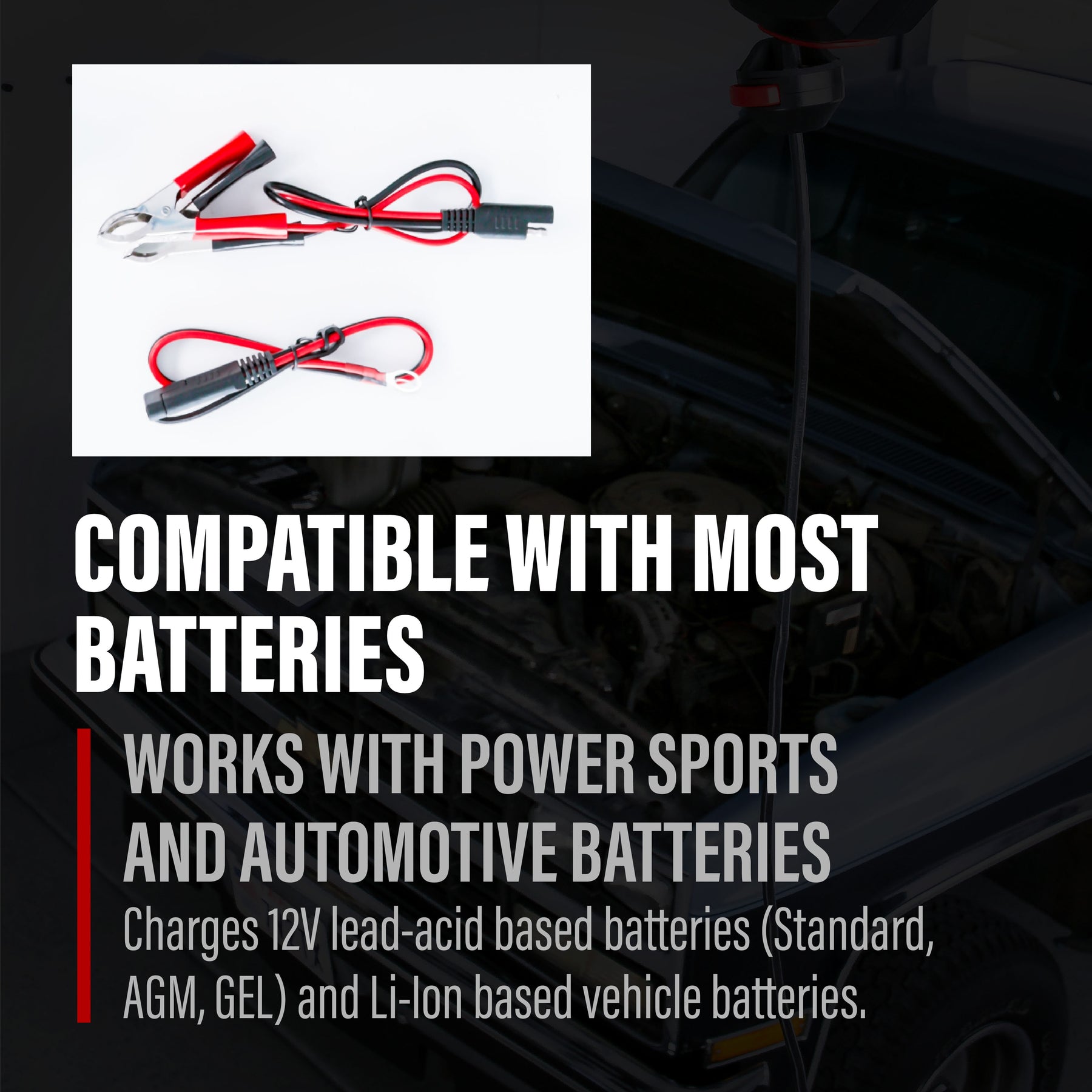 Charge Drop™, 1x SAE to Alligator Clips - 2ft, SAU to O-Ring Terminals - 2ft, Single mounting Bracket, Misc hardware.
