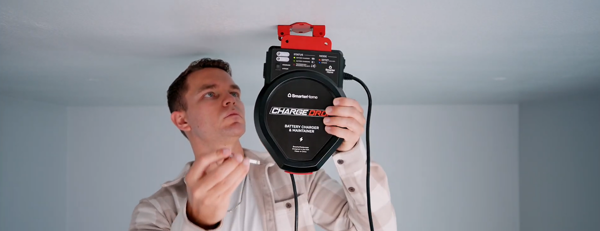 Installing the Charge Drop in your garage is quick easy. Use either the included single mounting bracket, or install it on some Smart Track you already have in place.