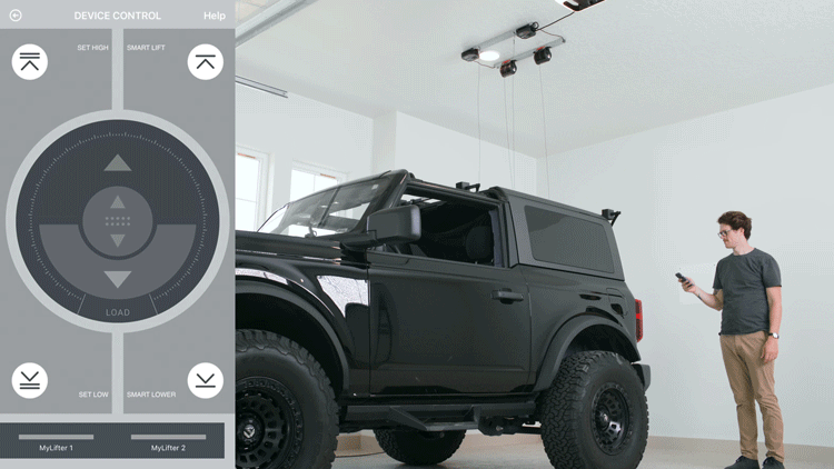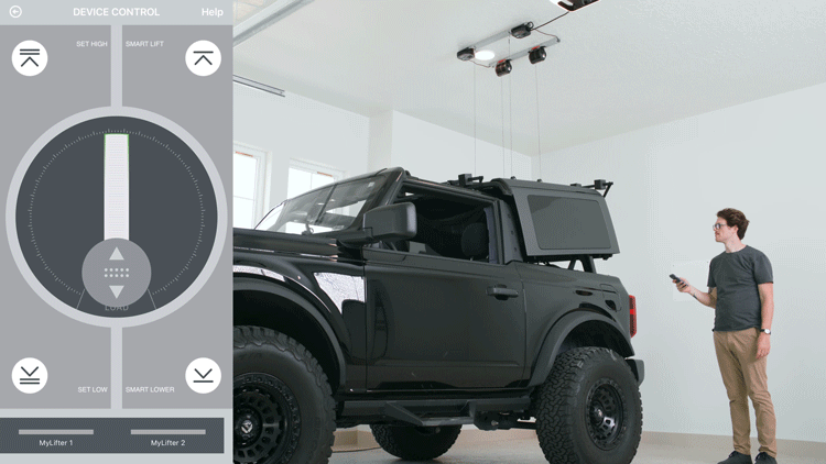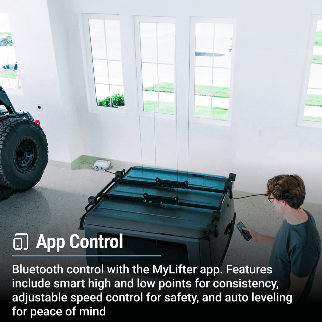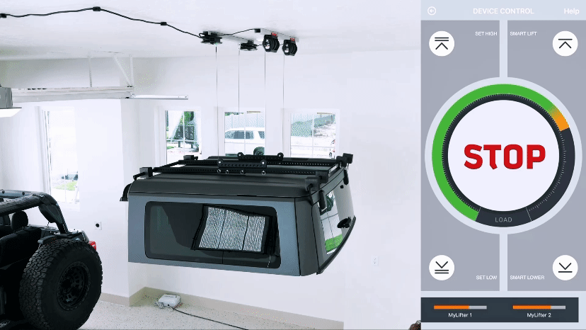 The MyLifter app’s “Smart Points" feature allows you to create raised and lowered limits for your hard top. A single button press on the app automatically moves the item to the selected limit.