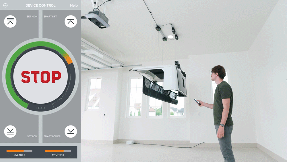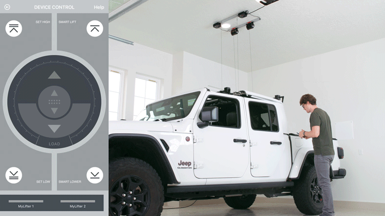 The MyLifter app’s “Smart Points" feature allows you to create raised and lowered limits for your hard top. A single button press on the app automatically moves the item to the selected limit.