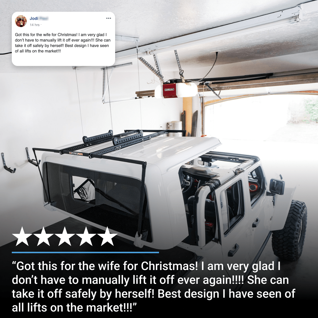 Both MyLifter’s work in sync. They work together to lift and lower at the exact same speed, keeping your hard top level and safe.