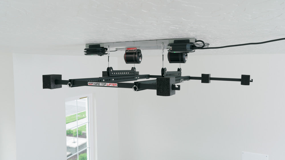 The MyLifter is the smartest and safest overhead storage motor. Period. With advanced features like weight sensing, overload protection, multi motor syncronization, Smart Stopping points, speed control, and a built in automatic lock, there really is nothing else like it. The Hard Top Lifter includes two MyLifter motors that work seamlessly together to hoist and store your hard top.