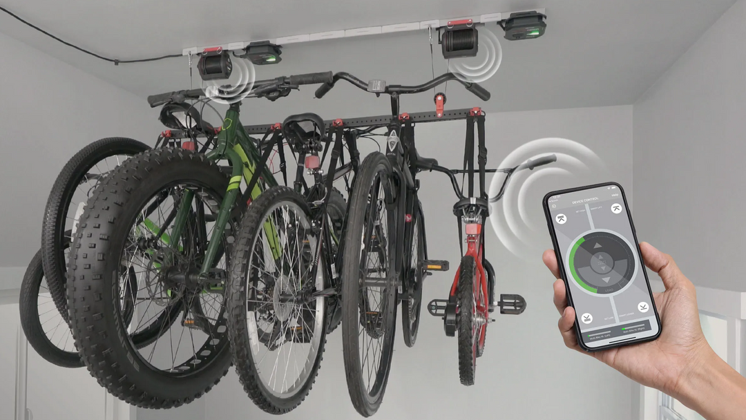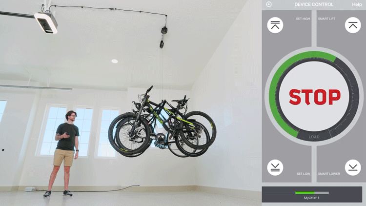 The MyLifter is the smartest and safest overhead storage motor. Period. With advanced features like weight sensing, overload protection, multi motor syncronization, Smart Stopping points, speed control, and a built in automatic lock, there really is nothing else like it. The Multi-Bike XL includes two MyLifter motors that work seamlessly together to safely lift and store your bikes.