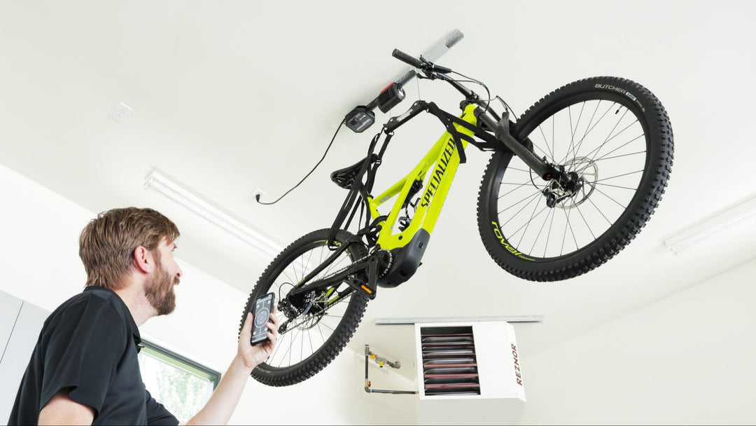 The Single-Bike Lifter is a great solution for E-Bikes. With 100 pounds if lifting capacity this lifter will handle pretty much any E-Bike you throw at it, giving you access when you need it, and getting it up and out of the way when you don't.