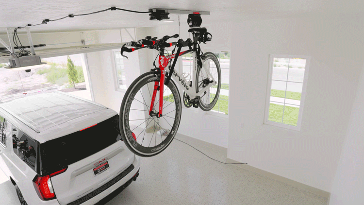 You can use single bike lifters by themselves, or in groups for our most premium bike storage experience. With the Flex Groups option in the app, you can bring down a single bike, or your whole families bikes at the push of a button.